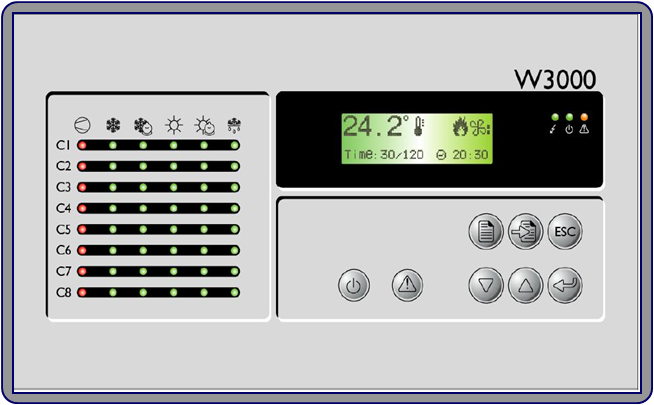 2. 機(jī)組控制與運(yùn)行管理:先進(jìn)的W3000 微電腦智能控制系統(tǒng),內(nèi)置克萊門特特殊設(shè)計(jì)的控制算法,更加突出機(jī)組的節(jié)能性和可靠性:FIFO 壓縮機(jī)運(yùn)行時(shí)間均衡功能,延長(zhǎng)整機(jī)壽命;自動(dòng)負(fù)荷調(diào)整輸出功能,節(jié)能節(jié)電;通過與壓縮機(jī)的減載系統(tǒng)相配合,實(shí)現(xiàn)25-100%無(wú)級(jí)調(diào)節(jié);運(yùn)行參數(shù)調(diào)整和設(shè)定,適應(yīng)不同環(huán)境應(yīng)用;溫度壓力保護(hù)采用模擬量測(cè)量,可以預(yù)測(cè)預(yù)防故障發(fā)生,增加可靠性。